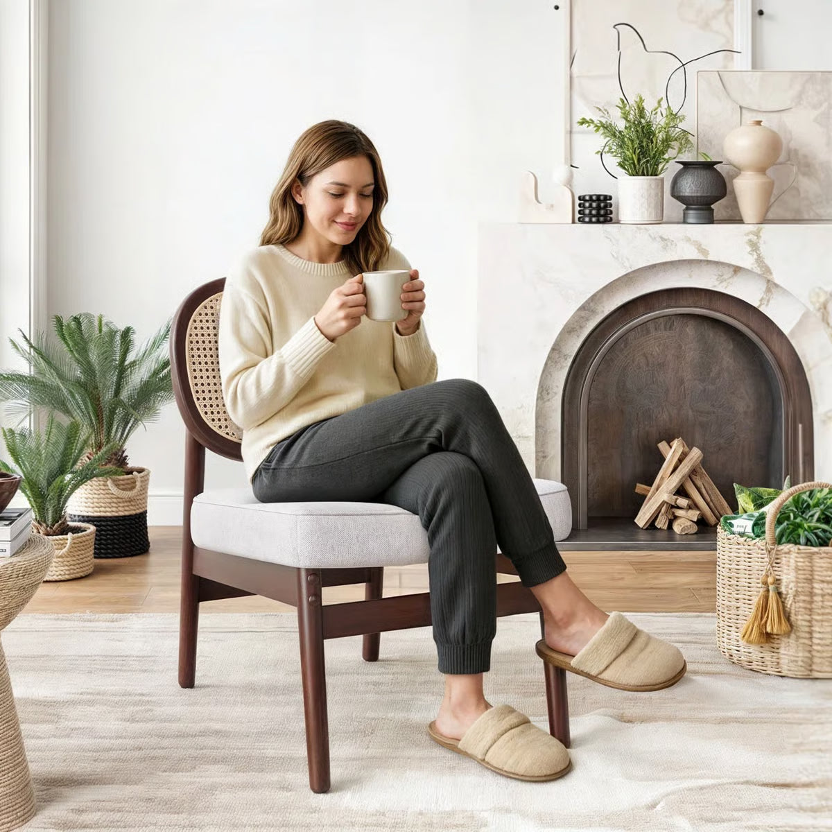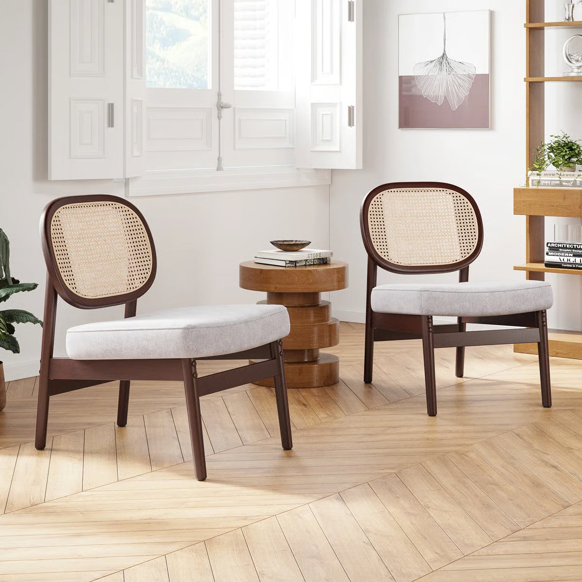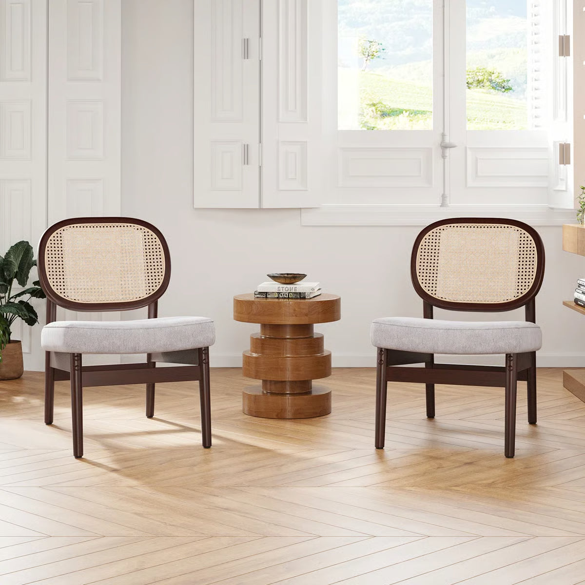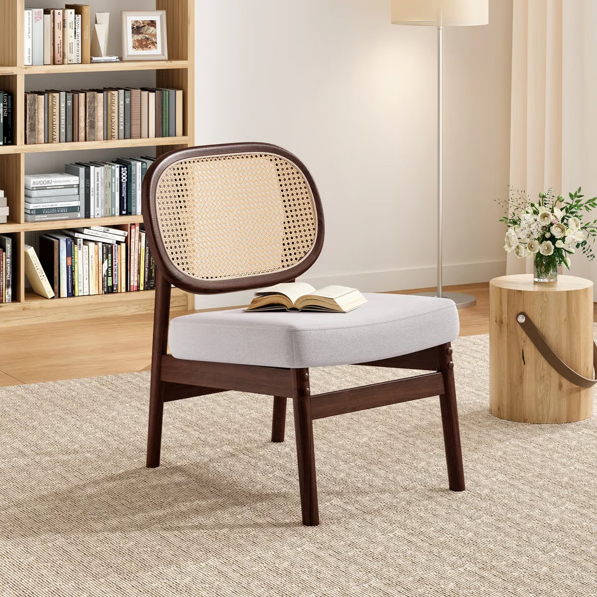Bring a blend of natural charm and modern comfort into your home with the Morwenna Accent Chair – Beige/Brown. Designed with a distinctive rattan cane backrest and a solid beech wood frame finished in walnut, this chair adds a touch of mid-century elegance to any living space. Its armless silhouette provides a sleek, versatile look, making it a stylish addition to living rooms, reading corners, or bedrooms.