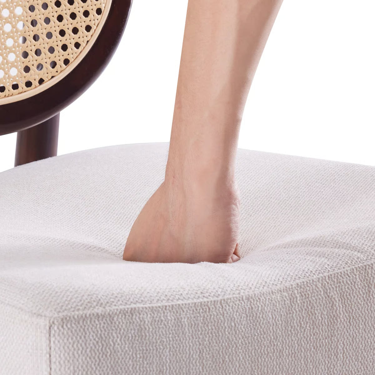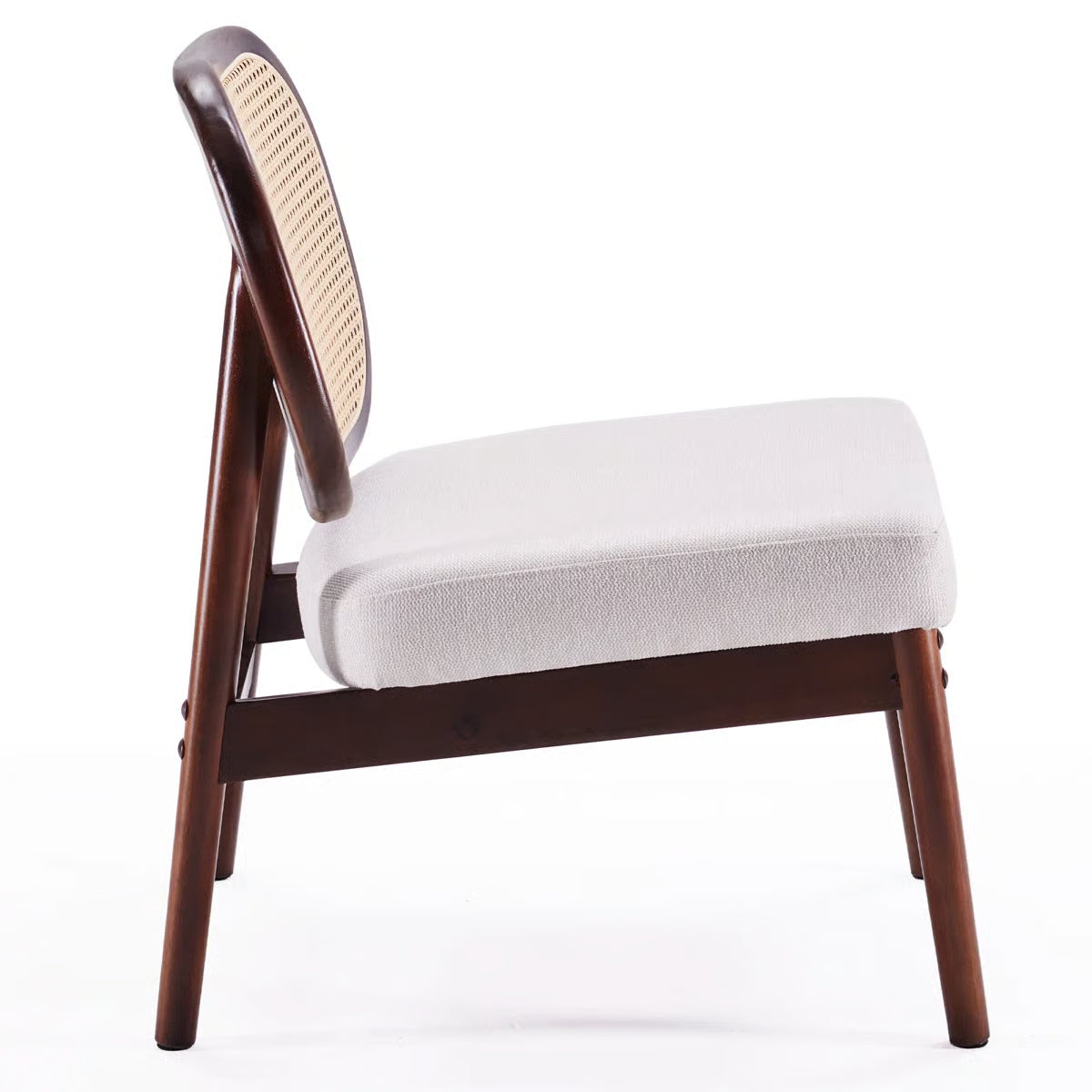 • Mid-century inspired rattan cane backrest with walnut wood frame