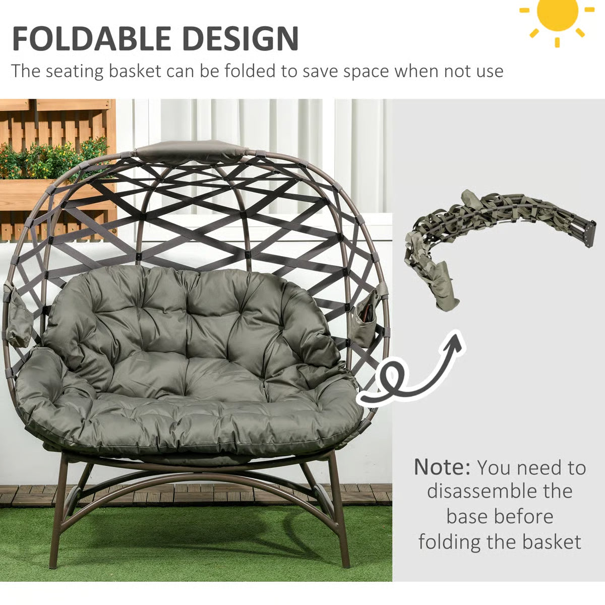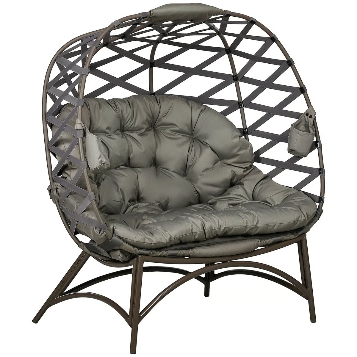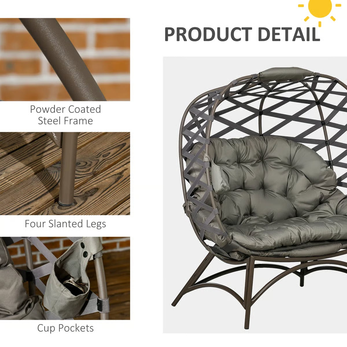 Bring comfort and style to your outdoor or indoor space with the Hollis Double Egg Chair. Designed for two, this spacious egg-shaped chair features a supportive powder-coated steel frame and stylish cross-weave detailing. The large padded cushion ensures cozy seating, while the integrated side pockets keep your drinks or small essentials within reach.