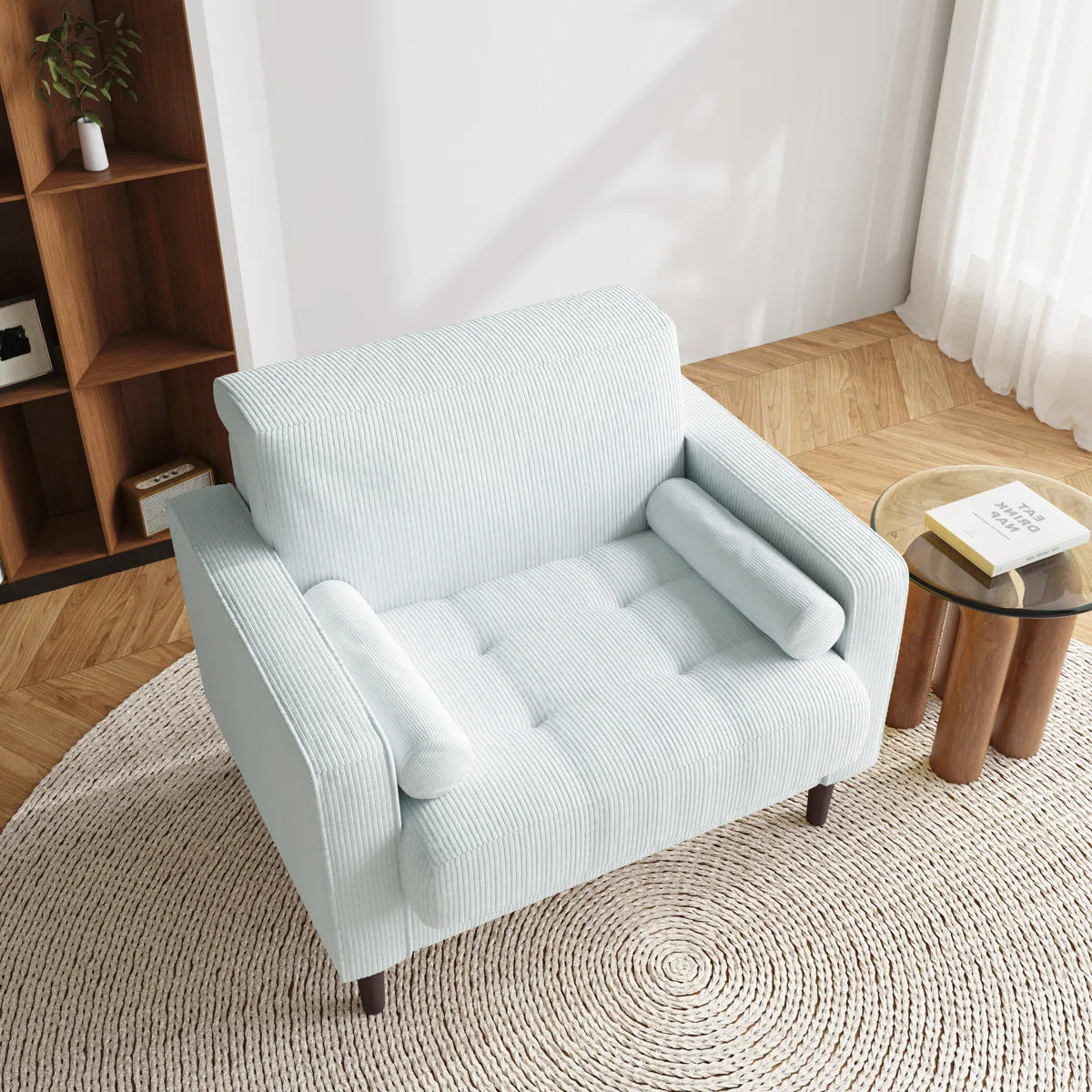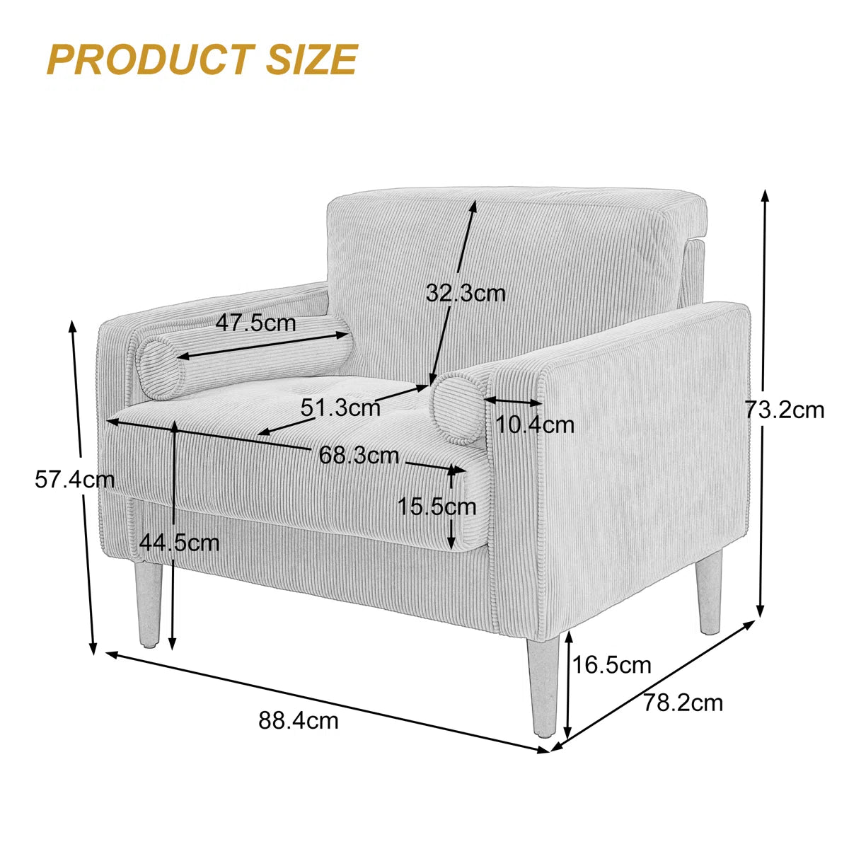 The Quinn Corduroy Tufted Armchair – White brings comfort and style together in one inviting piece. Upholstered in soft, thick corduroy fabric, this armchair is designed for cozy lounging while making a bold statement in your living space. Adding depth and elegance to any room. Built with a solid and engineered wood frame, it promises long-lasting durability and dependable support.