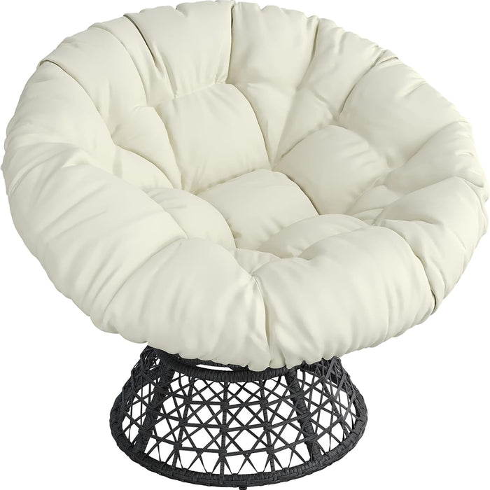 Crafted with a durable powder-coated iron frame and weather-resistant PE rattan, this Papasan chair is built for both indoor and outdoor enjoyment. The 360° swivel function allows you to move freely without repositioning the chair, adding flexibility and fun to your lounging. With its removable cushion and timeless wicker-inspired style, this piece combines comfort, durability, and versatility for any modern home or garden.