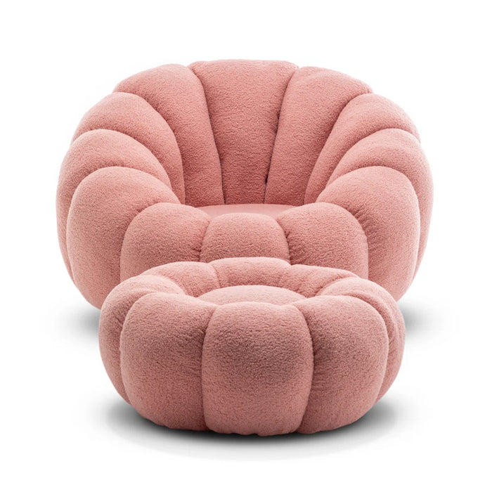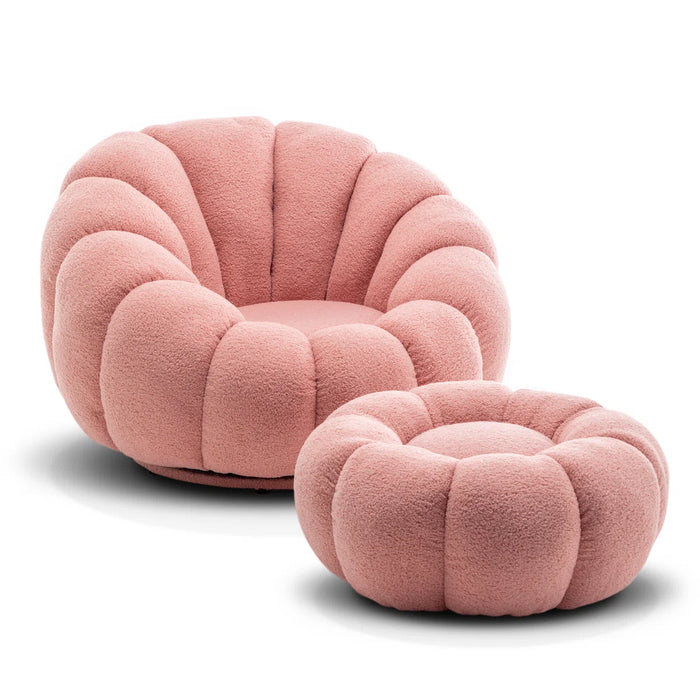 Features: • Colour: Pink • Material: Polyester Blend (Boucle), Foam, Fabric, Solid + Manufactured Wood, Metal • Dimensions: 97 x 94 x 61 cm (D x W x H) • Seat Size: 42 x 63 cm (W x D) • Seat Height: 27 cm • Weight Capacity: 115kg/ 253 lbs • Cloud-like design with soft curves for modern elegance. • Upholstered in premium bouclé fabric for a plush, cozy touch. • Comes with a matching ottoman for complete relaxation. • 360° swivel base for added functionality and versatility. • Ideal for living rooms, bedrooms, or reading corners. • Clean by lightly brushing and/or vacuuming to remove dust • Assembly required: No