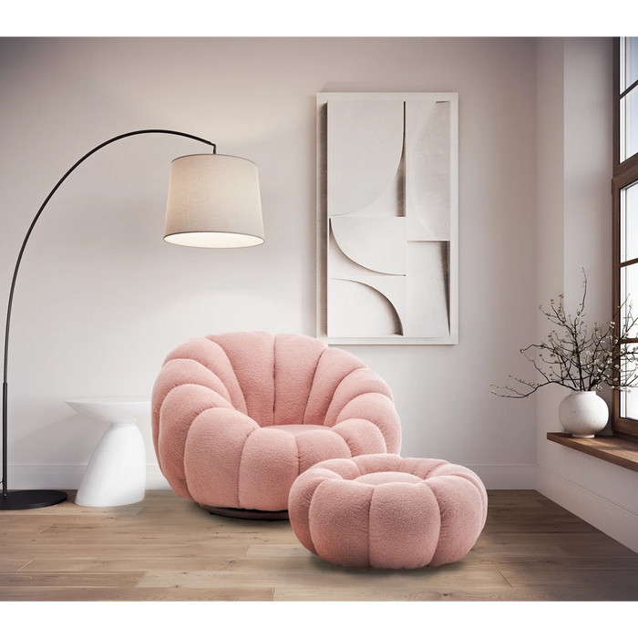 Transform your living space with the Cecil Modern Bouclé Swivel Accent Chair with Footrest - Pink. Designed to mimic the softness of a cloud, this plush chair-and-ottoman set blends cozy comfort with contemporary style. Wrapped in luxurious bouclé fabric, it offers a tactile, inviting feel that makes lounging a delight.