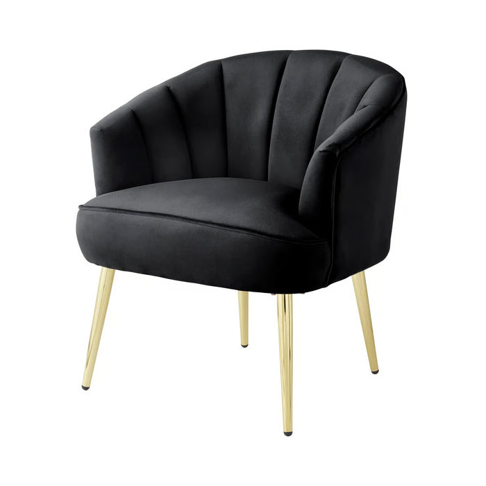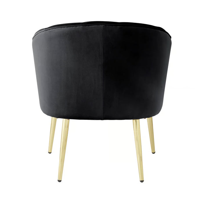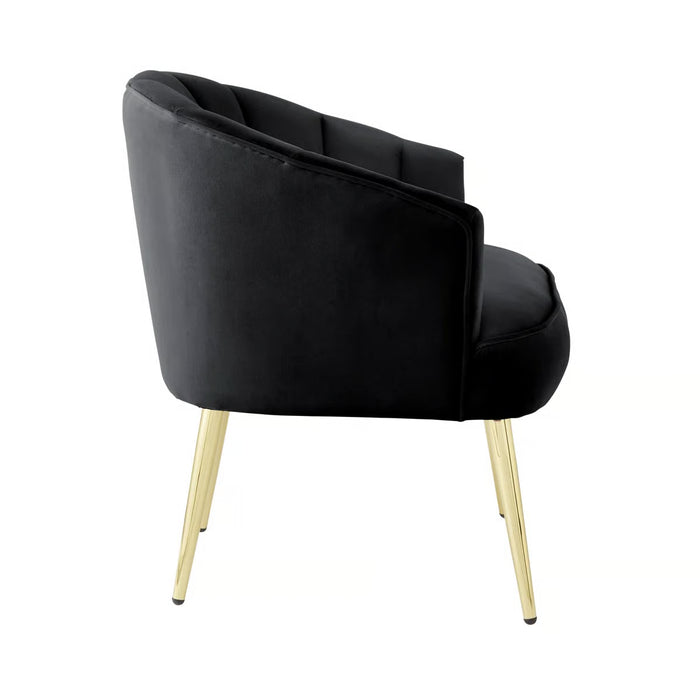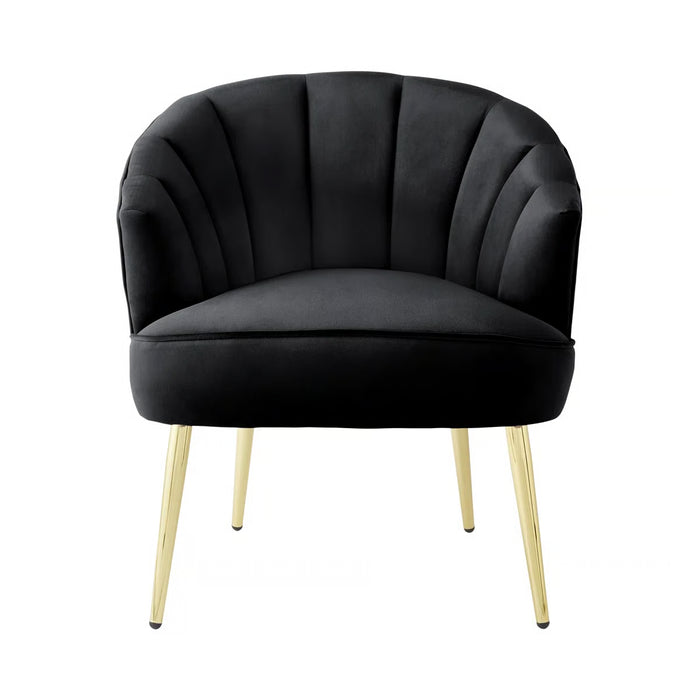 Bring a touch of timeless elegance to your home with the Delphine Modern Velvet Tub Chair - Black. Inspired by art deco charm, this chair showcases graceful scallop shell curves upholstered in plush black velvet, creating a soft and inviting statement piece. Its smooth silhouette and warm neutral tone blend seamlessly into any living room, bedroom, or stylish lounge corner.