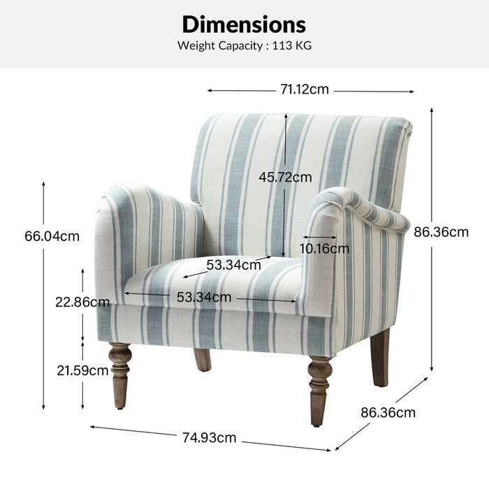 Lily Classic Striped Upholstered Accent Chair - Blue/White
