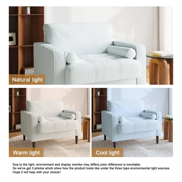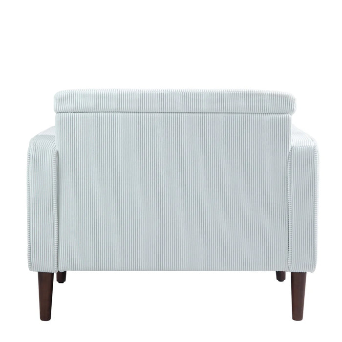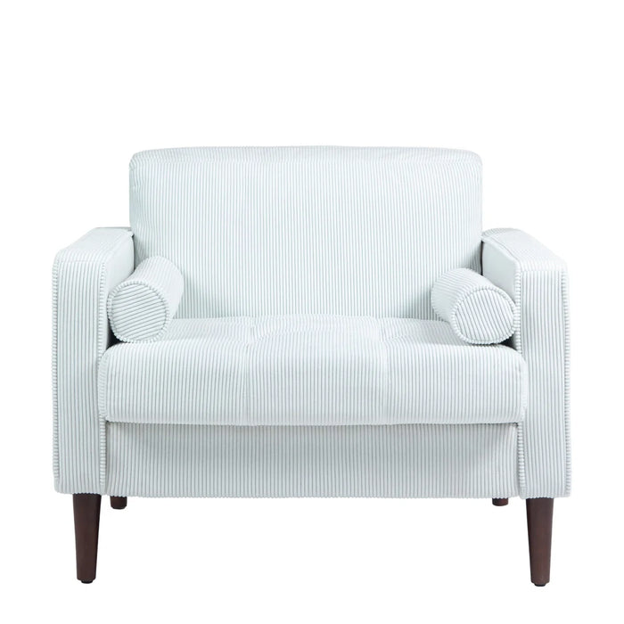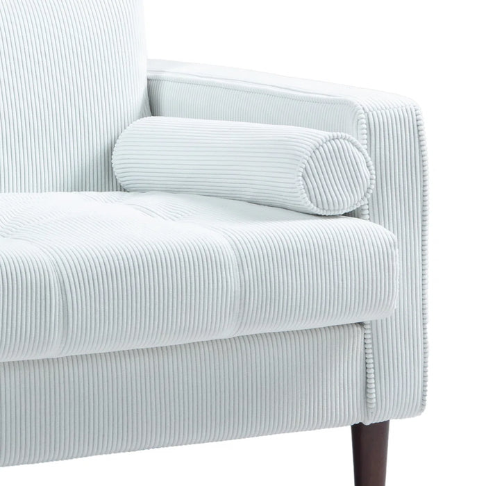 The Quinn Corduroy Tufted Armchair – White brings comfort and style together in one inviting piece. Upholstered in soft, thick corduroy fabric, this armchair is designed for cozy lounging while making a bold statement in your living space. Adding depth and elegance to any room. Built with a solid and engineered wood frame, it promises long-lasting durability and dependable support.