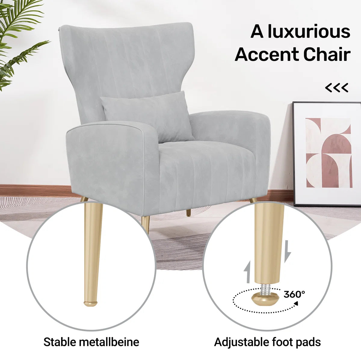 Bring timeless sophistication into your living space with the Reece Elegant Velvet Armchair in Grey. Designed with a perfect blend of modern minimalism and cozy elegance, this armchair features a tall backrest, plush velvet upholstery, and sleek gold-finished metal legs for a luxurious touch. Its high-quality craftsmanship ensures both comfort and durability, making it an ideal choice for relaxing, reading, or simply elevating the atmosphere of your room.