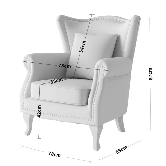 Features: • Colour: White/Black • Material: Fabric, Manufactured Wood, Foam • Dimensions: 75 x 78 x 87 cm (D x W x H) • Seat Size: 55 x 48 cm (W x D) • Seat Height: 42 cm • Weight Capacity: 180kg/ 397 lbs • Elegant butterfly print design for a bold, stylish accent • Classic wingback silhouette with flared arms for timeless appeal • Includes a matching accent pillow for extra style and coziness • Sturdy walnut-finished solid wood legs for lasting durability • Easy maintenance – simply wipe clean with a dry cloth • Assembly required: Yes