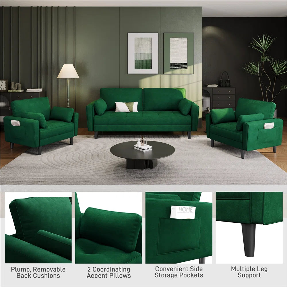 The Wendy Luxury Velvet Armchair - Green brings a perfect blend of elegance, comfort, and functionality to your living space. Upholstered in soft velvet fabric, this oversized armchair is designed with a sturdy wooden frame and four strong legs to ensure long-lasting durability. Its plush padded seat, cushioned backrest, and two matching accent pillows provide maximum relaxation, whether you’re enjoying a quiet evening with a book, hosting guests, or cuddling up with your pets.