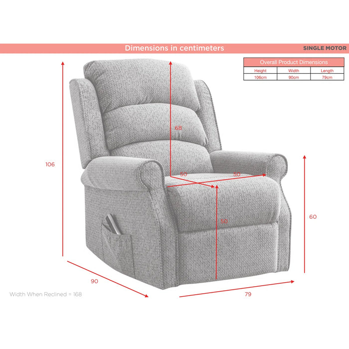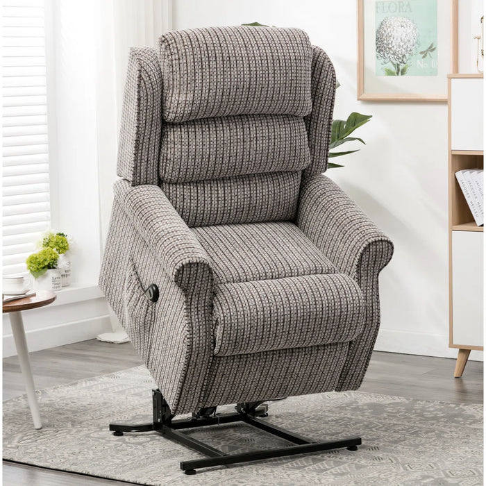 Designed for convenience, the recliner features a remote-controlled lift-assist and power reclining mechanism, making it an excellent choice for anyone seeking added mobility support. The adjustable footrest and headrest allow you to customize your seating position with ease, while the durable pocket-spring and foam construction ensure long-lasting comfort. Sturdy metal legs and a fire-resistant build provide durability and safety, making this chair a reliable addition to your home for years to come.
