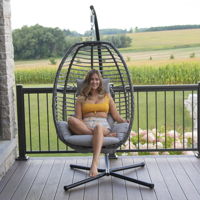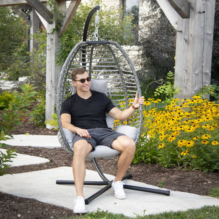 Built with a durable steel stand and sturdy four-leg base, the Wynne chair ensures stability and support. The easy-to-assemble fold-out frame makes storage simple during the off-season, while the removable hanging basket allows flexible use. With its combination of comfort, practicality, and timeless design, this hanging egg chair is a must-have for year-round relaxation.
